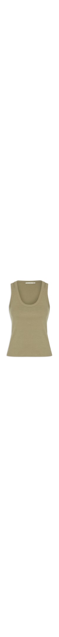 A regata verde é confeccionada em malha leve com superfície canelada de média elasticidade. A peça justa ao corpo, possui decote em U, alças médias e cavas estendidas.