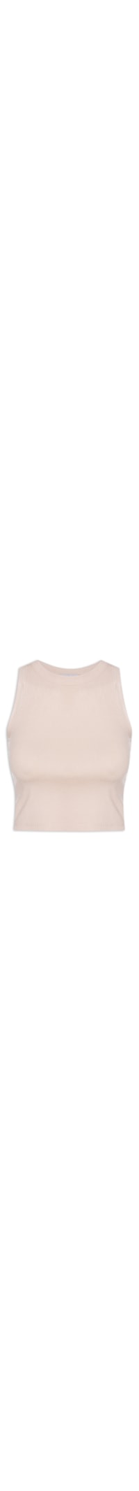 A regata bege é confeccionada em malha com superfície canelada e média elasticidade. A peça justa ao corpo possui decote redondo, alças largas e comprimento cropped*.