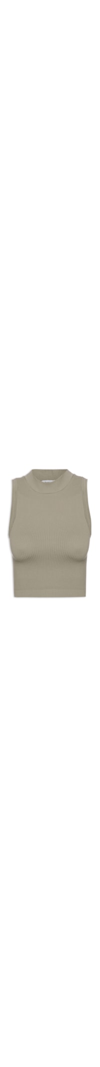 A regata cinza é confeccionada em malha canelada com alta elasticidade. A peça justa ao corpo possui gola alta, alças médias e comprimento cropped*.
