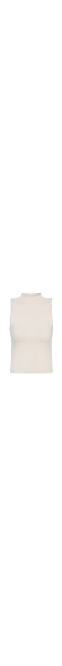 A regata bege é confeccionada por malha canaleda com alta elasticidade. A peça justa ao corpo possui gola alta, cavas levemente estendidas e comprimento cropped*.