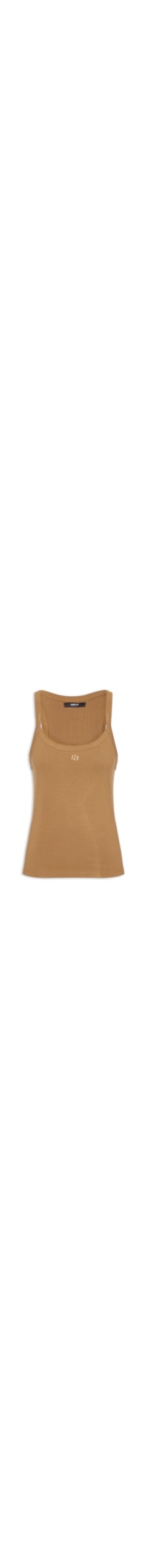 A regata marrom é confeccionada em malha canelada com alta elasticidade. A peça justa ao corpo possui decote U, alças finas, cavas estendidas, logo da marca bordado na parte frontal e sem bojo.