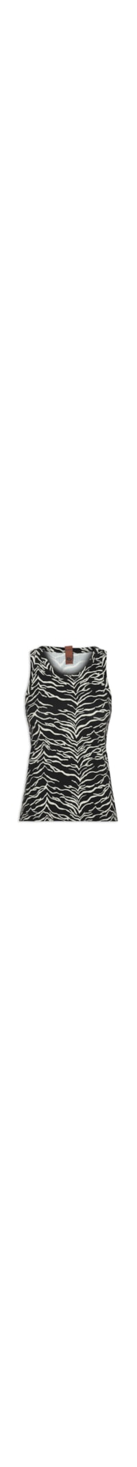 A regata preta é confeccionada em malha com superfície canelada de média elasticidade. A peça justa ao corpo possui decote em U, alças médias, cavas estendidas, estampa abstrata em cor contrastante branco e tag da marca aplicada na parte posterior.