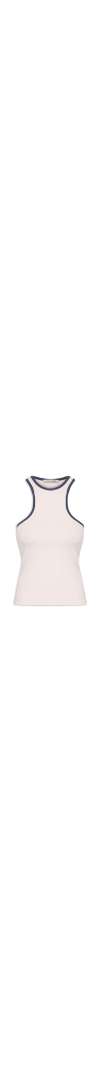 A regata rosa é confeccionada em malha com média elasticidade. A peça justa ao corpo possui decote nadador, cavas regulares, logo da marca bordado na parte posterior em cor contrastante e detalhe de viés na cor azul no decote e cavas.