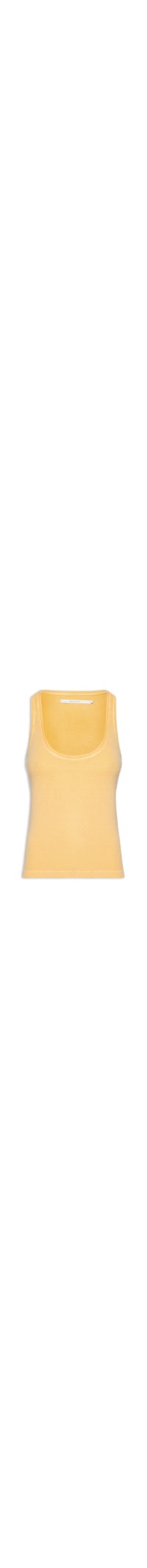 A regata amarela é confeccionada em malha de algodão com alta elasticidade. A peça justa ao corpo possui decote U profundo, alças médias, cavas regulares e acabamento canelado.