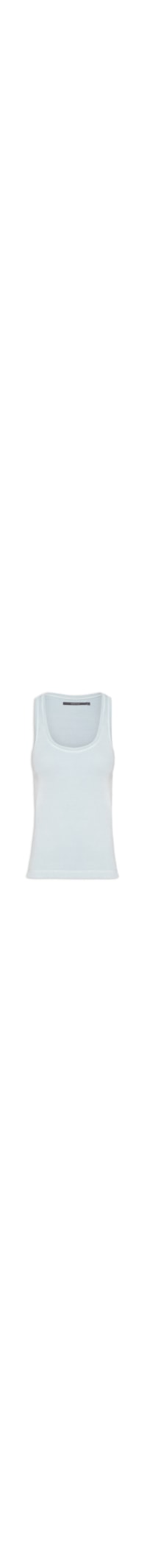 A regata azul é confeccionada em malha de algodão com alta elasticidade. A peça justa ao corpo possui decote U profundo, alças médias, cavas regulares e acabamento canelado.