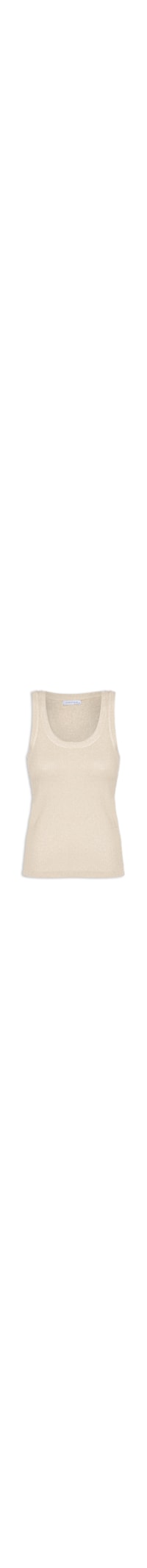 A regata marrom é confeccionada em tricot com fios de lurex com alta elasticidade. A peça justa ao corpo possui decote em U, alças médias, cavas regulares e acabemento canelado.