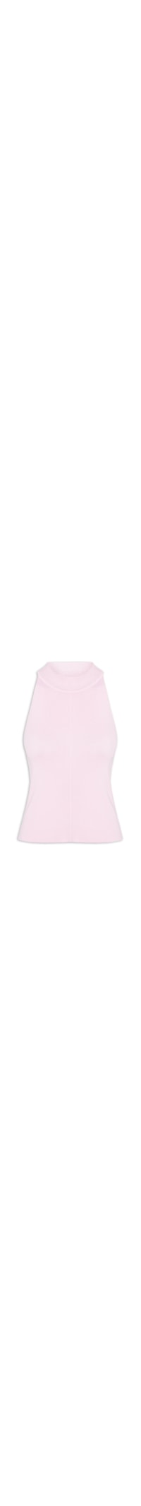 A regata rosa é confeccionada em tricot com alta elasticidade. A peça solta ao corpo possui decote arredondado, cavas regulares e recorte frontal.