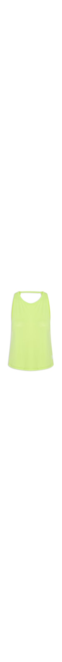 A regata verde é confeccionada em malha de poliamida sem elasticidade. A peça solta ao corpo possui decote redondo e decote posterior em U profundo com tira aplicada, alças médias, cavas estendidas e nome da marca estampado na parte frontal na altura da barra em cor contrastante.