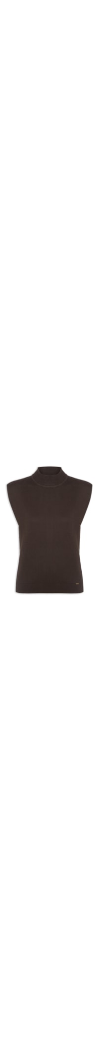 A regata marrom é confeccionada em malha com média elasticidade. A peça justa ao corpo possui gola alta estilo chaminé, cavas amplas com ombros levemente estruturados, caimento ajustado ao tórax, barra com acabamento canelado e aplicação de tag metálica da marca na parte frontal.
