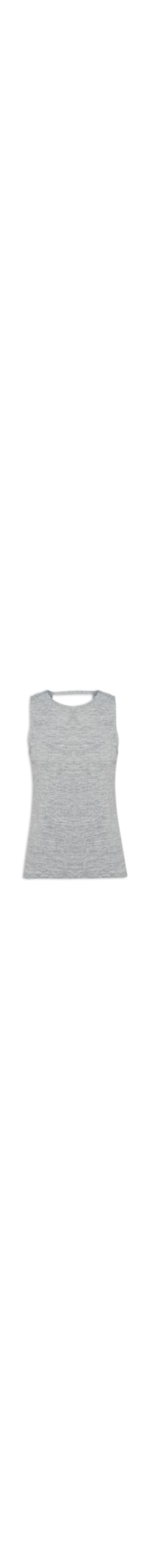 A regata cinza e confeccionada em malha leve de média elasticidade. A peça solta ao corpo, possui decote redondo, cavas estendidas e recorte posterior vazado com detalhe transpassado.