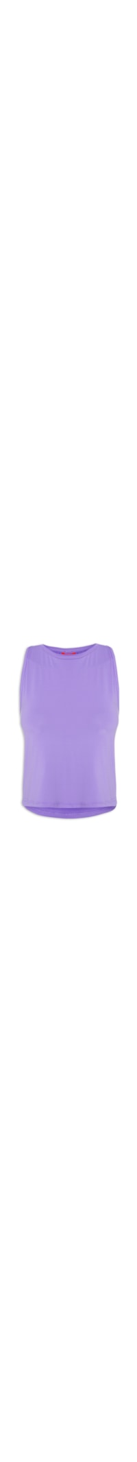 A regata lilás é confeccionada em mesh. A peça possui gola v, alças médias, cavas regulares, tag emborrachada da marca em cor contrastante na parte posterior, comprimento cropped* e shape solto.