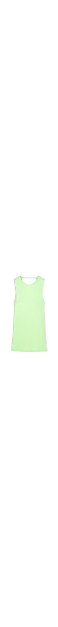 A regata verde neon é confeccionada em malha de poliamida de média elasticidade. A peça solta ao corpo possui decote frontal redondo e decote posterior em V profundo transpassado com tira fina aplicada, alças médias, nome da marca aplicado em material refletivo na parte frontal, leve transparência e comprimento alongado.
