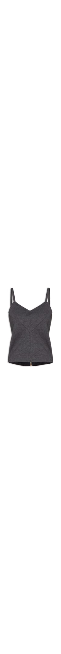 A regata cinza é confeccionada em malha encorpada de média elasticidade. A peça justa ao corpo possui decote V, alças finas reguláveis, pences frontais, tag emborrachada da marca aplicada na parte posterior, efeito mescla, forro, sem bojo, comprimento cropped* e fechamento posterior em zíper metalizado.