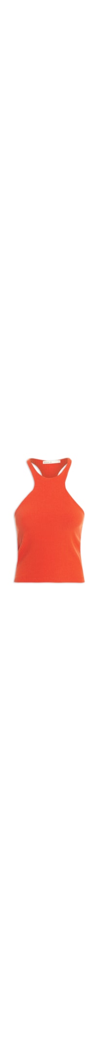 A regata vermelha é confeccionada em malha canelada com alta elasticidade. A peça justa ao corpo possui decote frontal trapézio e posterior nadador, alças finas, cavas estendidas, meio forro e comprimento cropped*.