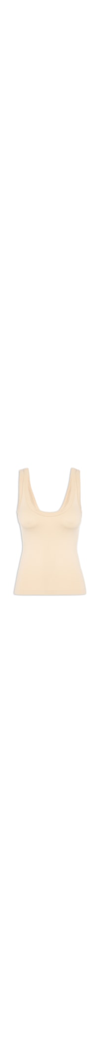 A regata bege é confeccionada em malha de poliamida com alta elasticidade. A peça justa ao corpo possui decote em U, alças largas, ombros regulares, textura canelada, comprimento regular, barra reta e acabamento canelado.