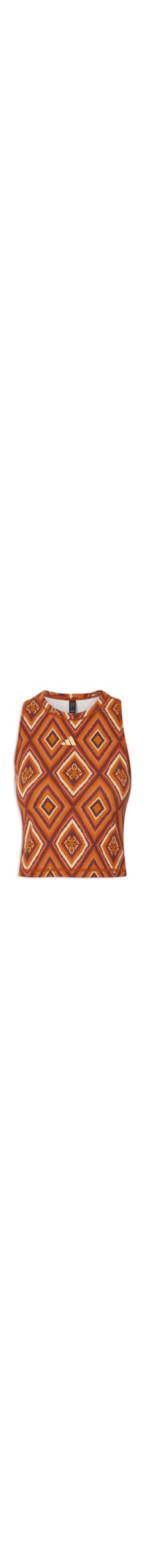 A regata marrom é confeccionada em malha com alta elasticidade. A peça justa ao corpo possui decote redondo frontal e nadador posterior, alças médias, logo da marca emborrachado aplicado na altura do busto, estampa abstrata em cores contrastantes, acabamento com costura overlocada e comprimento cropped*.