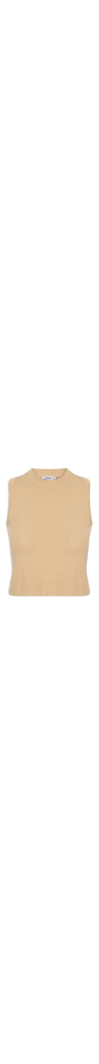 A regata bege é confeccionada em tricot com alta elasticidade. A peça justa ao corpo possui decote arredondado, alças médias, cavas regulares, comprimento cropped* e superfície canelada.