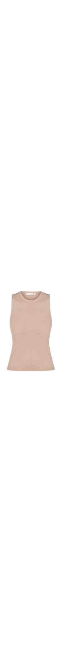 A regata bege é confeccionada por tricot com superfície canelada e alta elasticidade. A peça justa ao corpo possui decote redondo, alças médias e cavas estendidas.