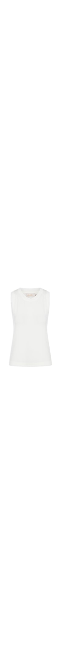 A regata branca é confeccionada em malha leve com superfície canelada com alta elasticidade. A peça justa ao corpo possui decote redondo, alças largas e cavas alongadas.