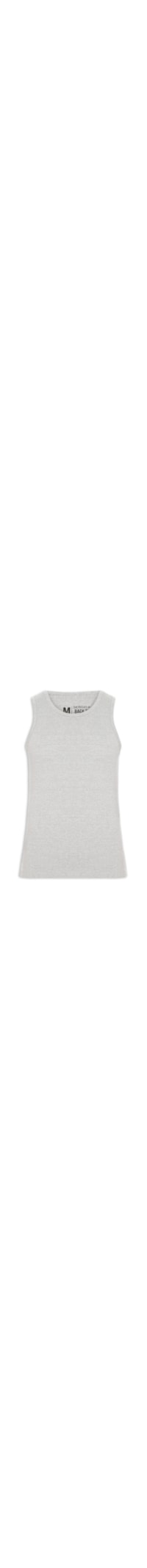 A regata cinza é confeccionada em malha de algodão com alta elasticidade. A peça justa ao corpo possui gola arredondada, alças médias, cavas regulares e acabamento canelado.