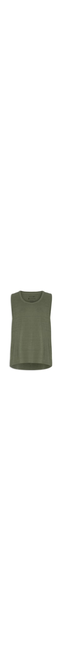 A regata verde é confeccionada em tecido misto de algodão efeito canelado, com alta elasticidade. A peça solta ao corpo possui gola redonda, alças largas, comprimento alongado, e barra com acabamento corte a fio.