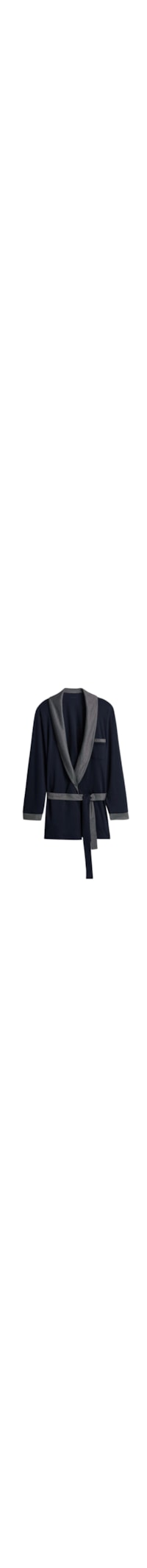 Roupão confeccionado em algodão, contém punhos de cor contrastante em tecido texturizado. Cinto e bolso à frente.