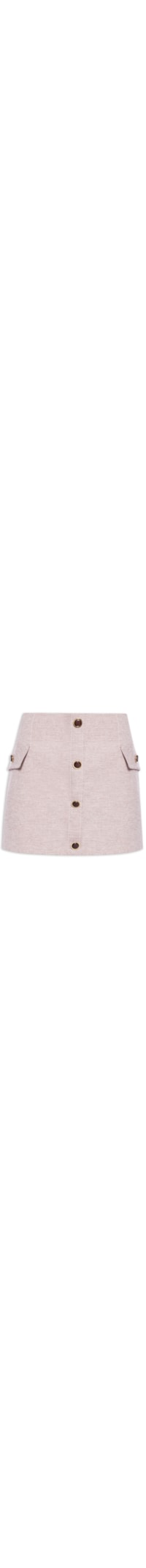 A saia rosa é confeccionada em tecido encorpado sem elasticidade. A peça solta ao corpo, de modelagem evasê, possui cintura alta, bolsos frontais decorativos com aba e maxi botão aplicado, recorte frontal com maxi botões decorativos aplicados, tag metalizada da marca aplicada na parte posterior da cintura, comprimento curto e fechamento posterior por zíper invisível.