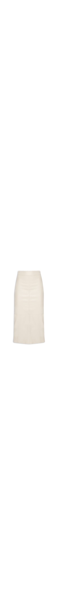 A saia bege é confeccionada por tecido leve com superfície texturizada sem elasticidade. A peça justa ao corpo possui cintura alta, recorte frontal, recorte posterior, fenda posterior, fechamento por zíper lateral e comprimento midi.
