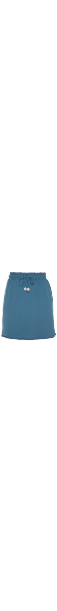 A saia azul é confeccionada em malha algodão. A peça possui cintura alta, cós elástico com cordão de amarração embutido, barra com acabamento em corte á fio, comprimento curto, caimento reto e acabamento pespontado.