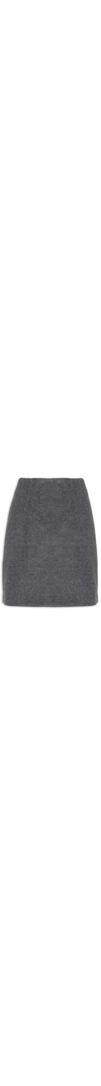 A saia cinza é confeccionada em tecido encorpado. A peça possui cintura alta, pences posteriores, shape solto, comprimento curto, caimento reto, acabamento pespontado e fechamento posterior por zíper invisível.