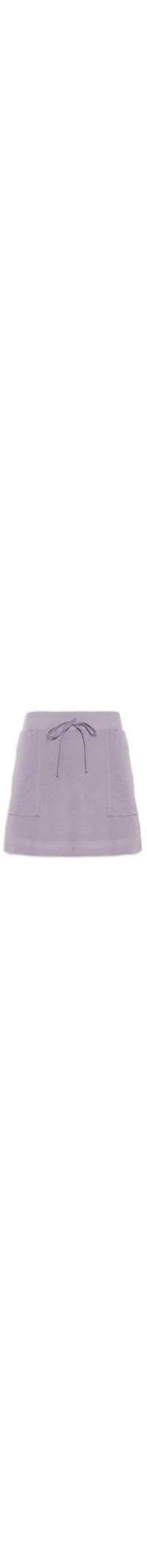 A saia lilás é confeccionada em malha com toque de linho. A peça possui cintura alta, cós elástico com cordão decorativo aplicado, bolsos frontais, forro, shape solto, caimento reto, comprimento curto e acabamento pespontado.
