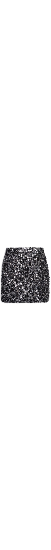 A saia preta é confeccionada tecido leve com superfície em paetês e sem elasticidade. A peça solta ao corpo possui cintura alta, padronagem abstrata em tons contrastantes, forro, fechamento lateral por zíper e comprimento curto.