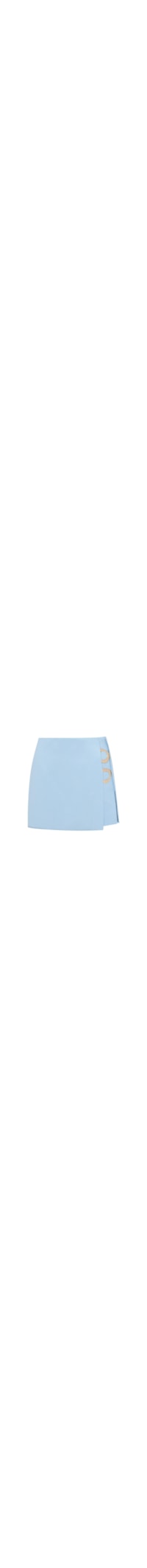 Saia curta com recorte lateral que valoriza a silhueta e traz um toque moderno ao visual. O destaque fica por conta dos dois aviamentos de argola em metal dourado fosco, aplicados na lateral, que adicionam personalidade e sofisticação à peça. Perfeita para compor produções contemporâneas com atitude.