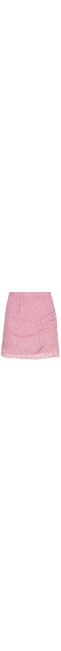 A saia rosa é confeccionada em tecido leve com baixa elasticidade. A peça justa ao corpo possui cintura alta, cós com elástico, superfície texturizada e comprimento curto.