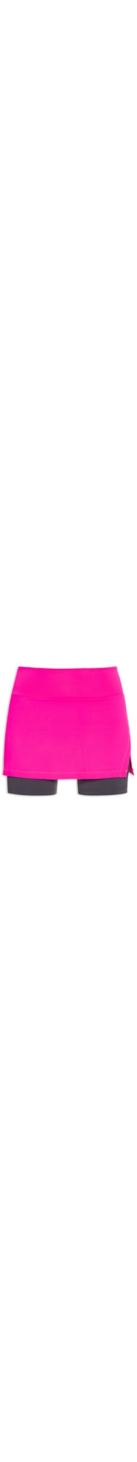 A saia rosa é confeccionada em malha de poliamida com alta elasticidade e solta ao corpo. A peça possui cintura alta, cós amplo, nome da marca estampado em cor contrastante na parte posterior, recorte frontal com fenda, short inferior cinza justo ao corpo e comprimento curto.