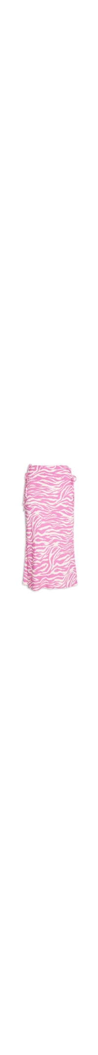 A saia rosa é confeccionada em tecido leve. A peça possui cintura alta, cordões alongados nas partes laterais para amarração, esatampa animal print, meio forro, comprimento midi e shape solto.
