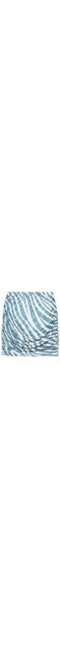 a Saia Azul é Confeccionada Em tule Com Alta Elasticidade. A Peça Justa Ao Corpo Possui Cintura Alta, Cós Com Elástico Embutido, Estampa Abstrata Em Cor Contrastante, Elástico Embutido Nas Partes Laterais Com Detalhe De Franzido, Detalhe De Drapeado Nas Partes Posterior E Frontal E Comprimento Curto.