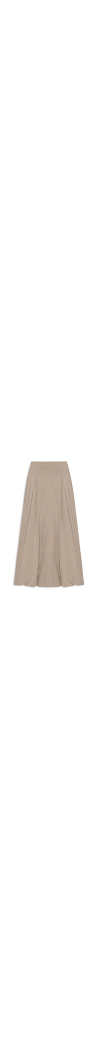 A saia cinza é confeccionada em malha de algodão com baixa elasticidade. A peça solta ao corpo de modelo balonê possui cintura alta, cós com elástico embutido, pregas frontais e comprimento midi.