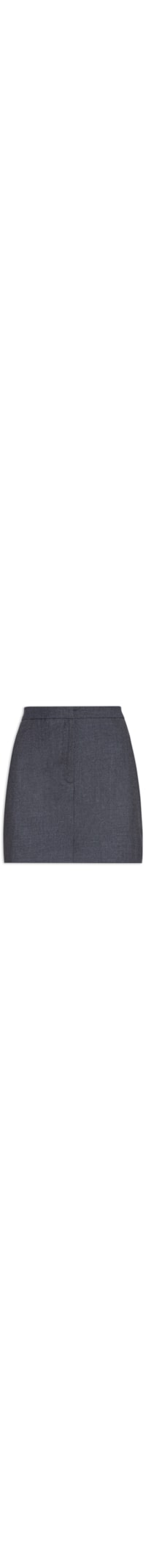 A saia cinza é confeccionada em tecido encorpado sem elasticidade. A peça solta ao corpo possui cintura alta, bolsos frontais embutidos, bolsos posteriores decorativos, pences posteriores, forro, comprimento curto e fechamento frontal por zíper, botão e colchete.
