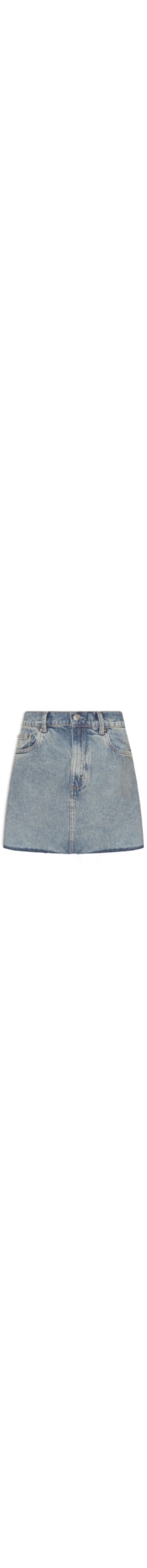 A saia jeans é confeccionada em sarja com lavagem em jeans sem elasticidade. A peça solta ao corpo possui cintura média, cós com passantes, five pockets*, recortes na parte posterior, nome da marca aplicado em alto relevo na parte frontal, tag da marca aplicada no cós da parte posterior, logo da marca metalizado aplicado no bolso posterior, barra com acabamento desfiado, efeito estonado, comprimento curto e fechamento frontal em botão e zíper.