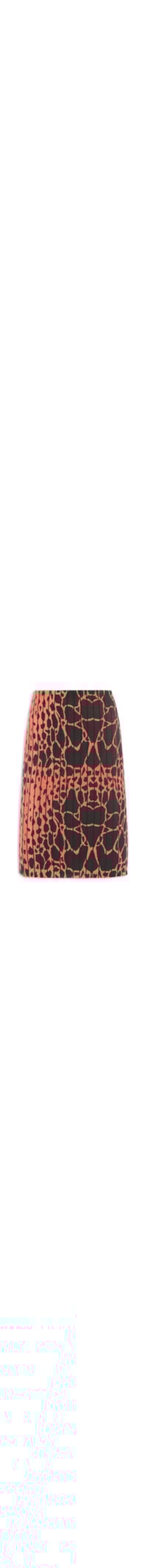 A saia laranja é confeccionada em malha encorpada. A peça de modelo lápis possui cintura alta, estampa animal print, shape justo e acabamento elástico.