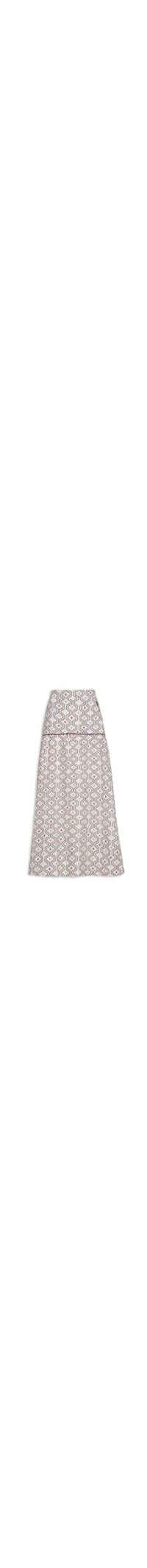 A saia bege é confeccionada em tecido leve sem elasticidade. A peça solta ao corpo possui cintura alta, cós com elástico embutido na parte posterior, mix de estampas em cores contrastantes, bolsos frontais modelo faca, recorte com detalhe de vivo em cor contrastante, meio forro, mix de estampas em cores contrastantes, comprimento longo e fechamento posterior por zíper invisível.