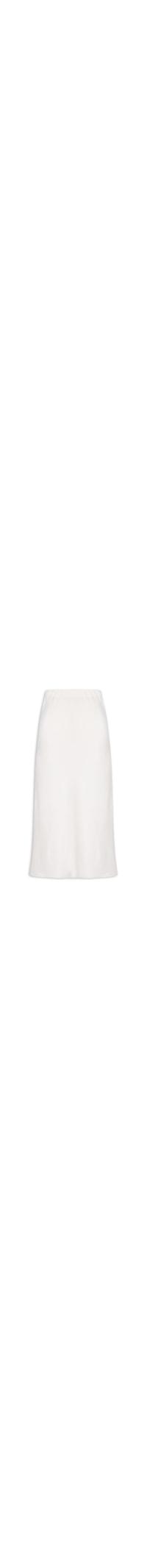 A saia off white é confeccionada em tecido leve com baixa elasticidade a acabamento acetinado. A peça solta ao corpo possui cintura alta, cós elástico, pences na parte posterior, comprimento midi e fechamento lateral por zíper invisível.