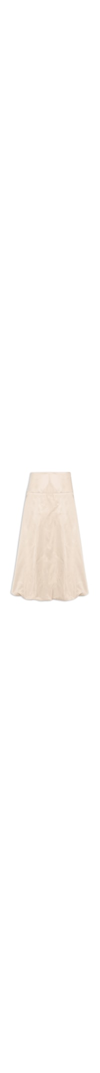 A saia bege é confeccionada em tactel sem elasticidade. A peça solta ao corpo de modelo balonê possui cintura alta, cós amplo, forro, comprimento midi e fechamento lateral em zíper invisível.