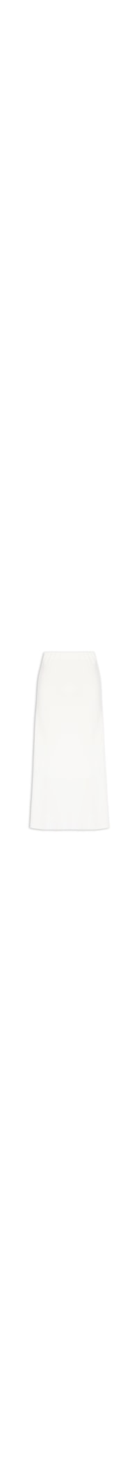 A saia branca é confeccionada em tecido leve com toque de linho sem elasticidade. A peça solta ao corpo possui cintura alta, cós com elástico embutido, meio forro e comprimento midi.