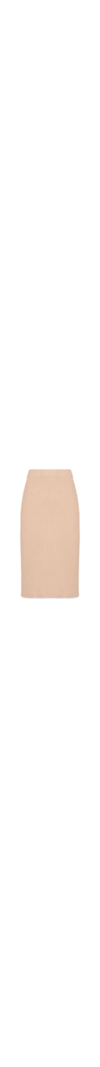A saia bege é confeccionada em tricot com aplicação de fios de lurex e alta elasticidade. A peça levemente justa ao corpo possui cintura alta, cós elástico, fenda posterior e comprimento midi.