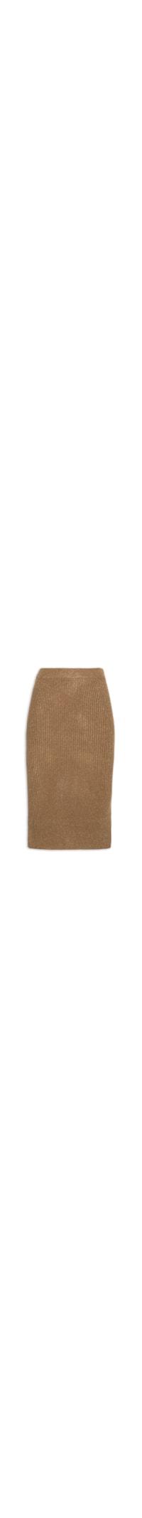 A saia marrom é confeccionada em tricot com aplicação de fios de lurex e alta elasticidade. A peça levemente justa ao corpo possui cintura alta, cós elástico, fenda posterior e comprimento midi.