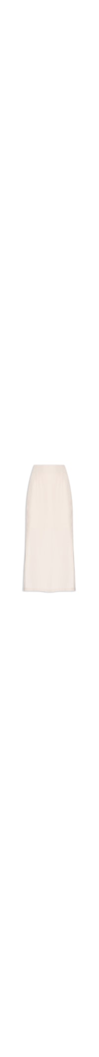 A saia bege é confeccionada em tecido leve sem elasticidade. A peça solta ao corpo possui cintura alta, recorte posterior, pences posteriores e frontais, fendas laterais, meio forro, comprimento midi e fechamento posterior por zíper invisível.