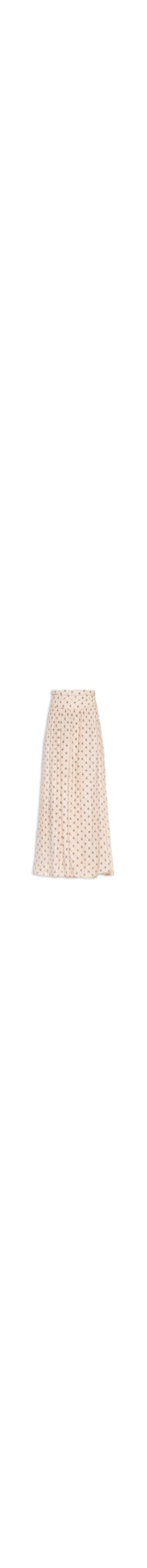 A saia bege é confeccionada em tecido leve com toque de linho sem elasticidade. A peça solta ao corpo, possui cintura alta, cós largo com recortes em alto relevo, tecido sobreposto frontal, comprimento midi, forro, mix de estampas em cores contratantes e fechamento lateral por zíper invisível.