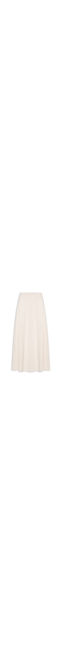 A saia bege é confeccionado em tecido leve com toque de linho e sem elasticidade. A peça de modelo evasê solta ao corpo possui cintura alta, recortes frontais e posteriores, forro, comprimento midi e fechamento posterior por zíper.